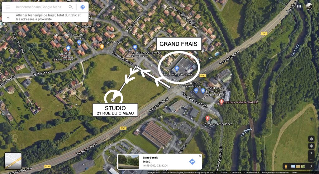 Le studio se trouve au 21 rue du Cimeau à Saint-Benoît. C’est très simple :